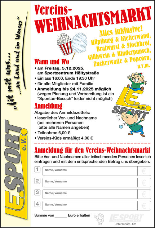 Vereins-Weihnachtsmarkt. Wir freuen uns auf euch zum Vereins-